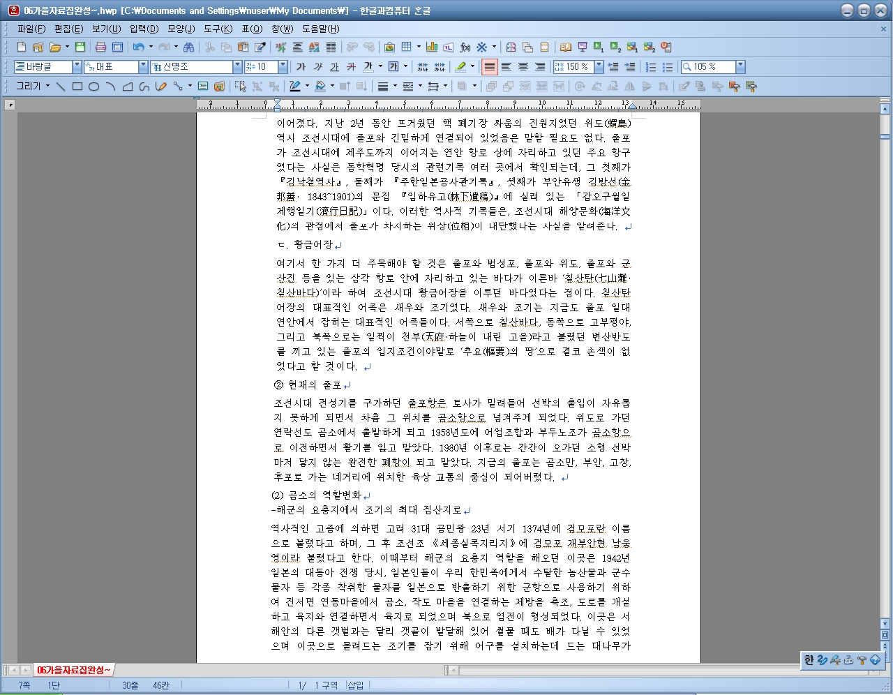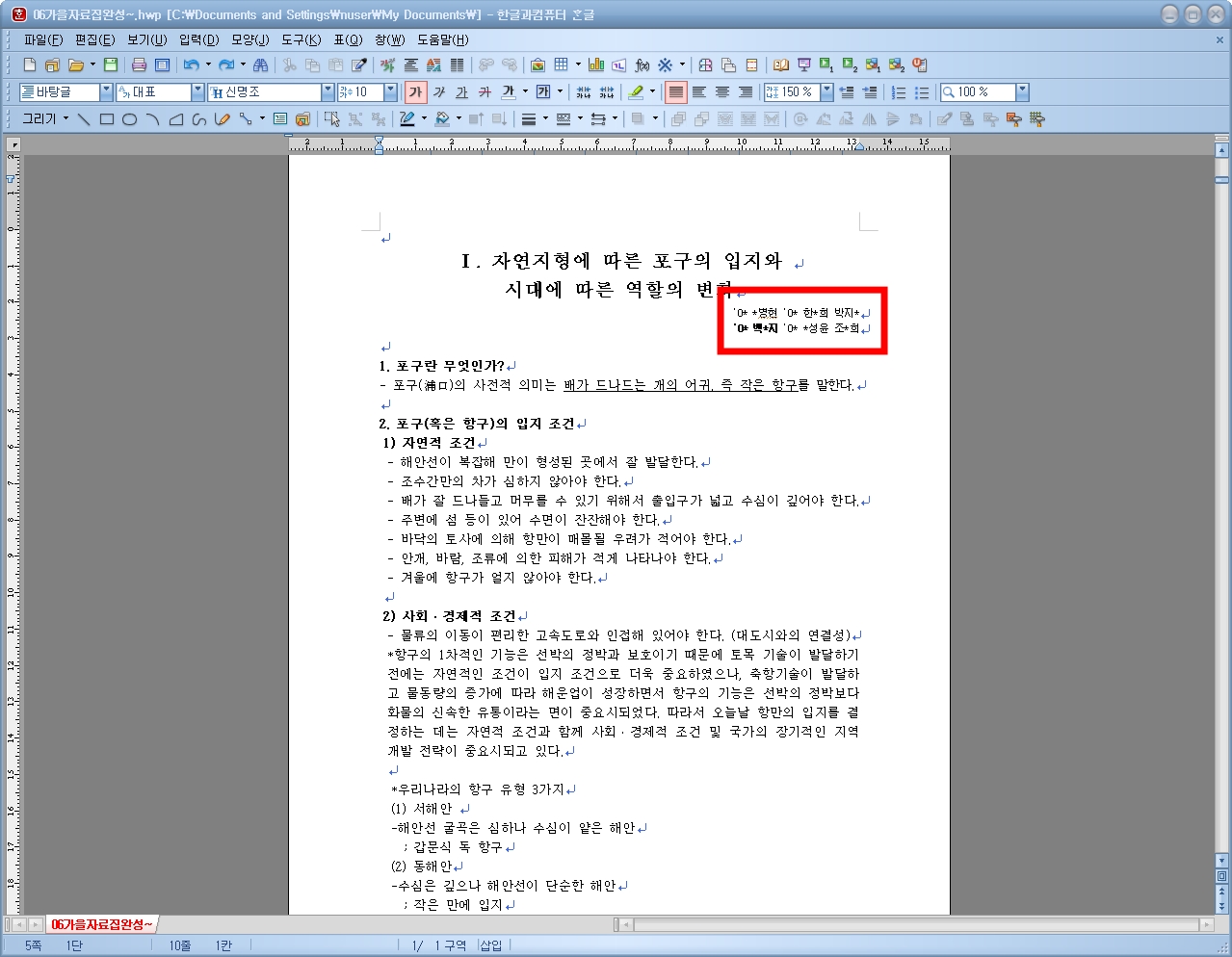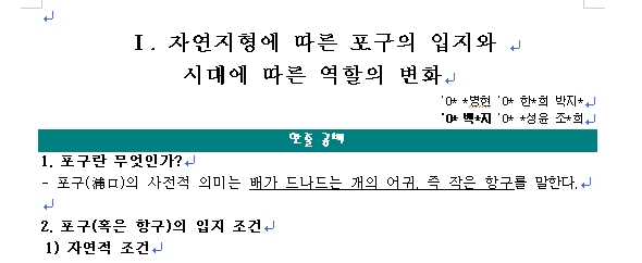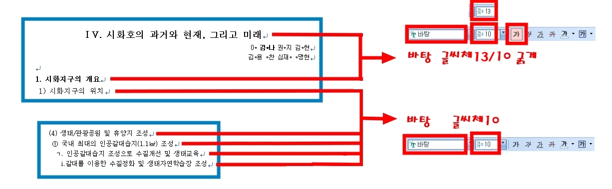 ③ 작성자 이름은두줄로 표시하며, 위치는 주제의 바로 아랫줄이며,본문과는 한줄의 공백을 둡니다.