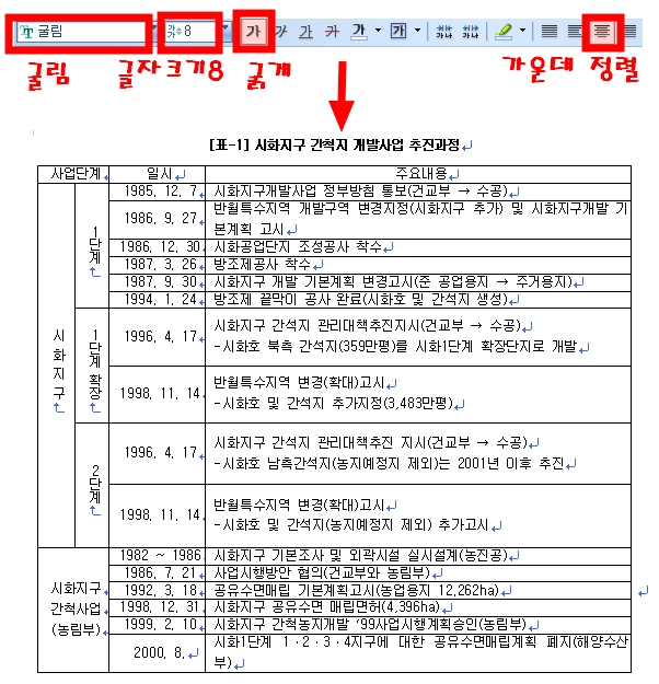 이것은 표에 번호아 이름, 출처를 달기 이전에 선행되어야 할 조건입니다만, 이것의 중요성에 대한 이해를 돕기 위해 그 아래에 소개한 것임을 밝힙니다.