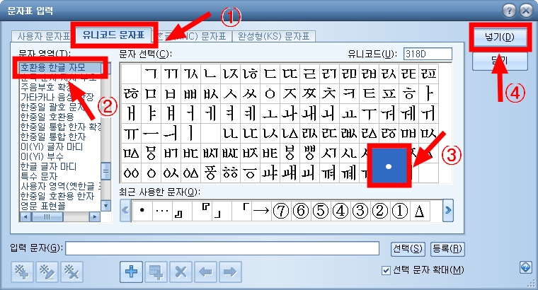 표기의 앞에 사용되는 점은 아래아로 논문 및 단행본에서와 동일합니다.